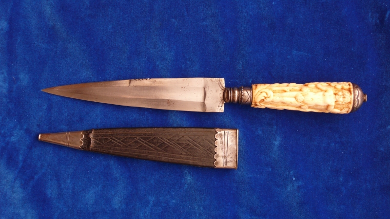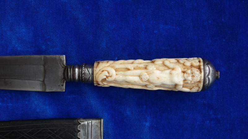 Magnifique couteau, poignée en ivoire scrulptée, avec fourreau d'origine